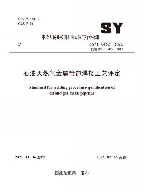 石油天然氣金屬管道焊接工藝評(píng)定SY/T 0452-2021