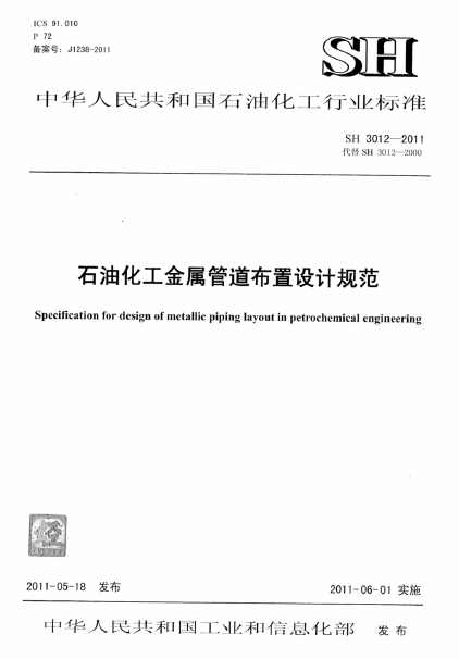 石油化工金屬管道布置設(shè)計(jì)規(guī)范 石化標(biāo)準(zhǔn) 3012-2011
