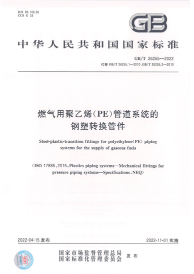 本文件代替GB/T 26255.1—2010《燃氣用聚乙烯管道系統(tǒng)的機械管件 第1部分:公稱外徑不大于63 mm的管材用鋼塑轉(zhuǎn)換管件》和GB/T 26255.2—2010《燃氣用聚乙烯管道系統(tǒng)的機械管件 第⒉部分:公稱外徑大于63 mm的管材用鋼塑轉(zhuǎn)換管件》,與GB/T 26255.1—2010和GB/T 26255.2—2010相比,除結(jié)構(gòu)調(diào)整和編輯性改動外,主要技術(shù)變化如下: