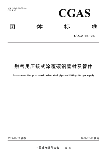 本標準規(guī)定了城鎮(zhèn)燃氣用壓接式涂覆碳鋼管材及管件(以下簡稱涂覆鋼管,涂覆管件)的術(shù)語和定義,規(guī)格尺寸和代號,材料,技術(shù)要求,試驗方法,檢驗規(guī)則,標志,包裝、運輸、貯存和安裝,質(zhì)量證明書等內(nèi)容。