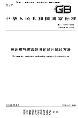 家用燃氣燃燒器具的通用試驗方法GB/T 16411-2023